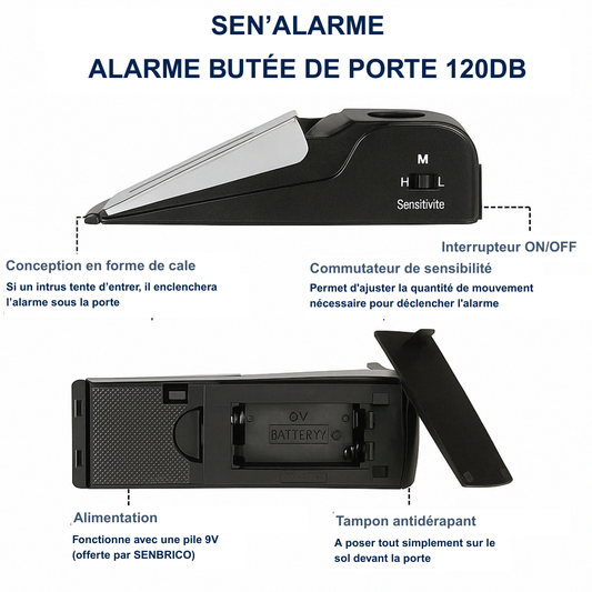 SEN'ALARME – Alarme Bas de Porte Portable avec Sirène Intégrée - 120db