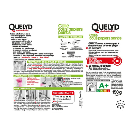 Colle QUELYD – Pour Tous Types de Papiers Peints, Facile et Écologique – 150g