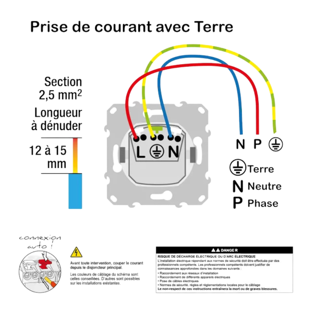 - 🔌 Type : Prise de courant avec terre affleurante